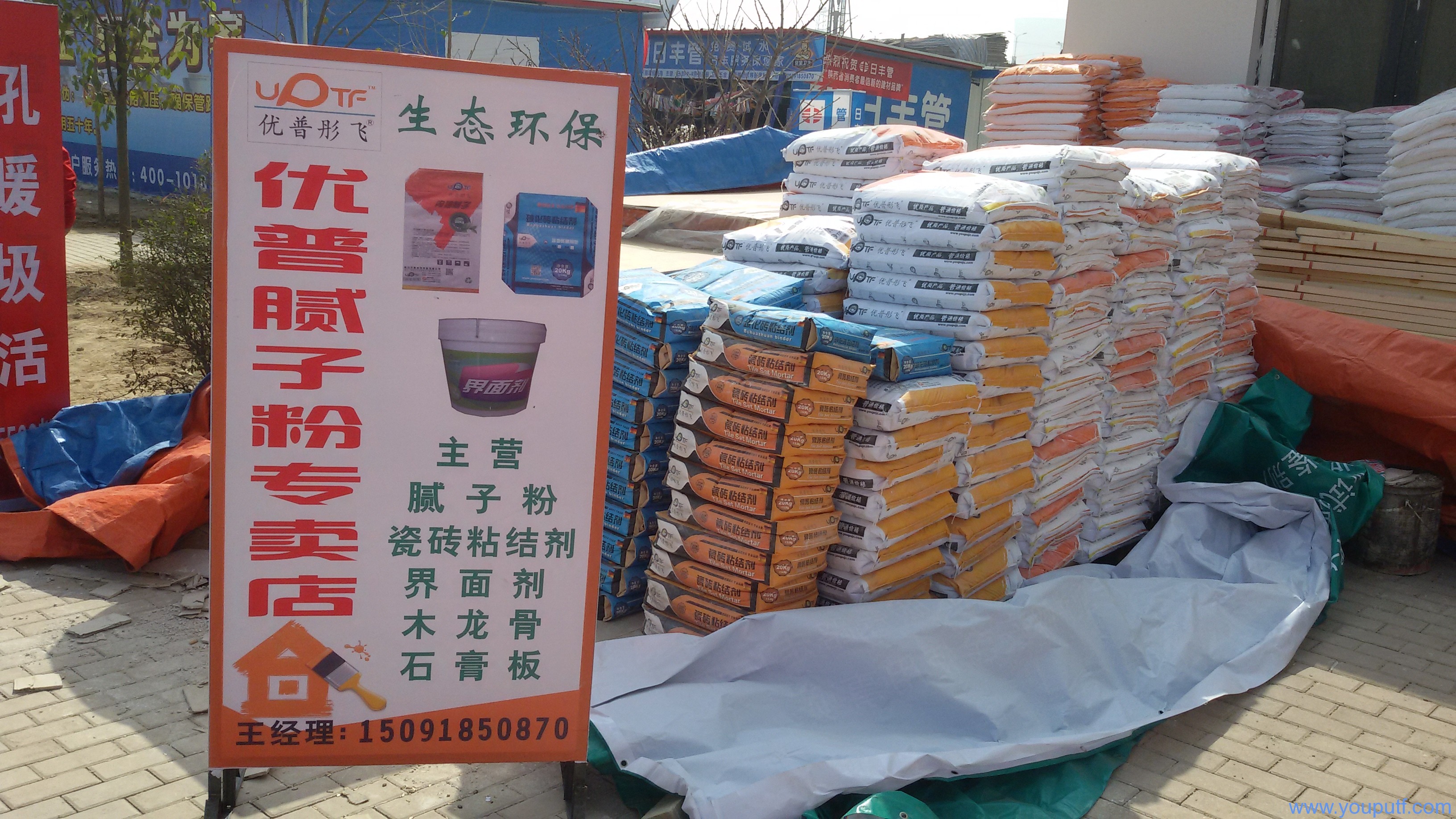 【經營產品】優普彤飛內墻膩子粉,優普彤飛石膏粉,優普彤飛粉瓷磚粘結劑,優普彤飛玻化磚粘結劑,優普彤飛界面劑